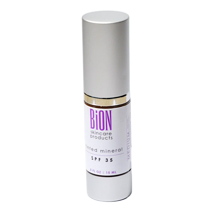 BiON Research's Tinted Mineral Moisturizer SPF 35. This Zinc Oxide based SPF moisturizer offers sheer coverage through physical and chemical sun protection, while moisturizing and adding the finishing touch to your skin routine. The minerals used for color contain additional titanium dioxide with a blend of 4 FDA-approved mineral pigments to provide superior purity of color and saturation. The creamy consistency goes on smoothly and is non-irritating to the eyes.