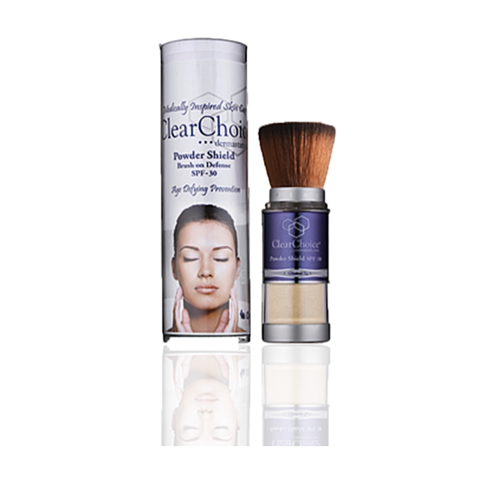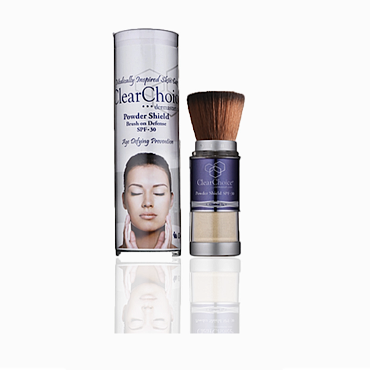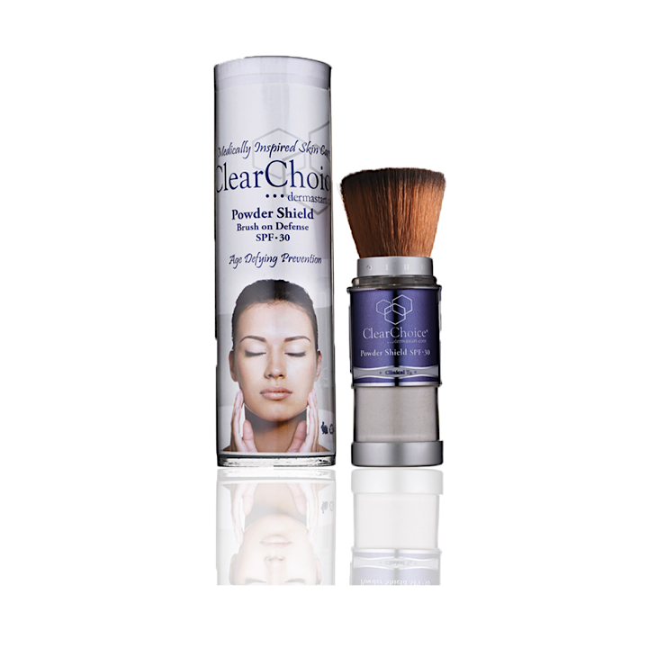 ClearChoice Powder Shield is a brush-on defense that shields your skin from the harmful effects of the sun. With just one quick application, this transparent, oil-free powder will filter out damaging rays and leave your skin silky smooth. Perfect for on-the-go touch-ups, this exclusive SPF 30 formula protects against dryness and UV overexposure. Choose ClearChoice Powder Shield for a flawless complexion, no matter where you go.