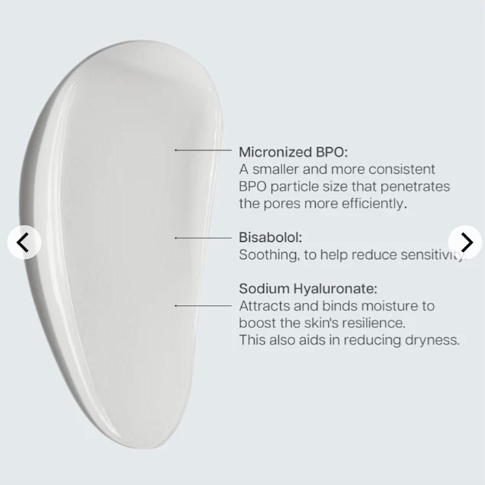 - Micronized Benzoyl Peroxide: Micronized for a smaller and more consistent benzoyl peroxide particle size that penetrates the pore more efficiently, while also preventing potential irritation. Kills C. acnes bacteria, antimicrobial, and aids in peeling the inside of the pore.