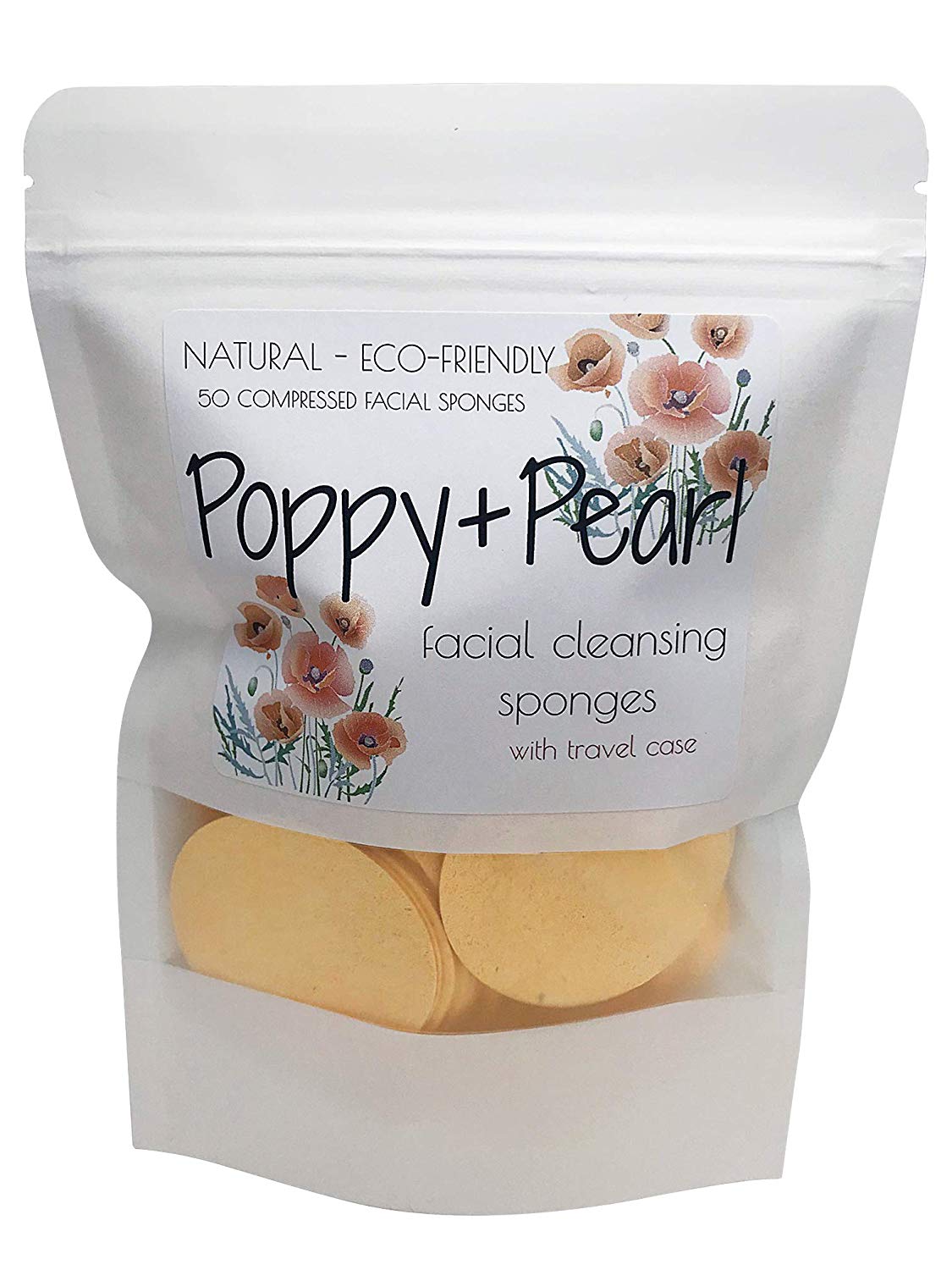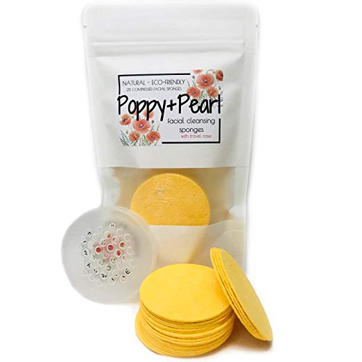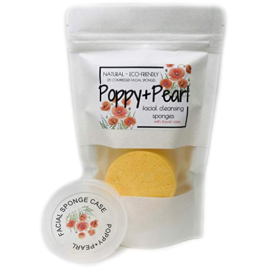 Poppy and Pearl Compressed Facial Cleansing Sponge w/ Travel Case - 25/50 pack
